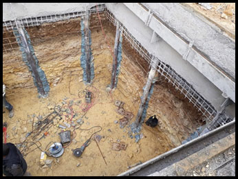 Il a été choisi de réaliser le terrassement du poste dans une paroi berlinoise. Elle permet de travailler en toute sécurité à près de 6m de profondeur, sans craindre de mouvement de sol, notamment pour les fondations du restaurant et de l’ancienne station.